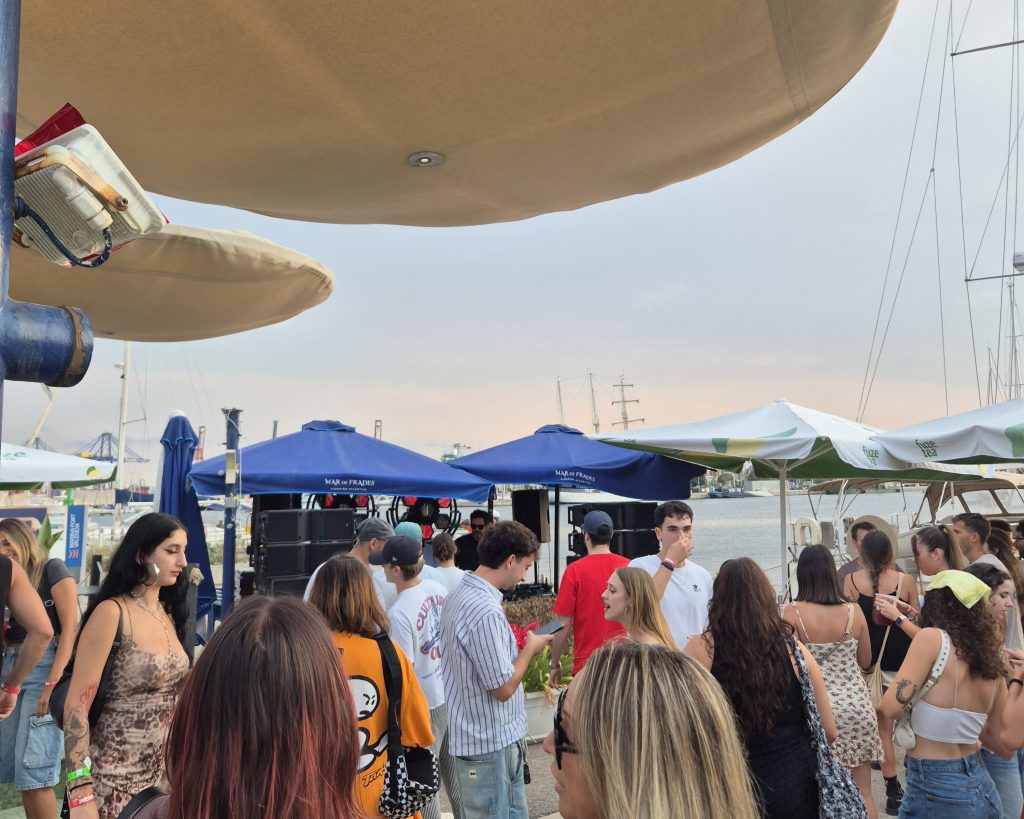 La jornada arrancó con el dúo de warm-up formado por Arellano y Gomms: una sesión pensada para acompañarte en tu primera toma de contacto, con grooves cálidos, capas de percusión y una sonoridad que buscaba situar al público entre la brisa del mar y el buen ambiente que se vive en el puerto de Valencia. Este primer set funcionó especialmente —house profundo y tech-house en clave meditativa— que permitió elevar la intensidad con naturalidad a lo largo de la velada.
